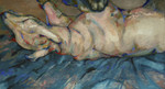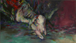 2009Na mijn onderzoek in lakverf kwam ik weer terug bij olieverf. ik probeerde opnieuw in kleur en vorm al schilderend de ontmoeting tussen menselijke en dierlijke intimiteit te vinden.